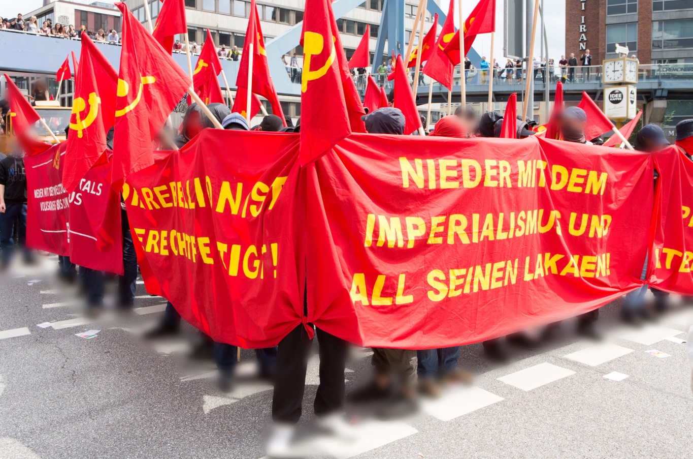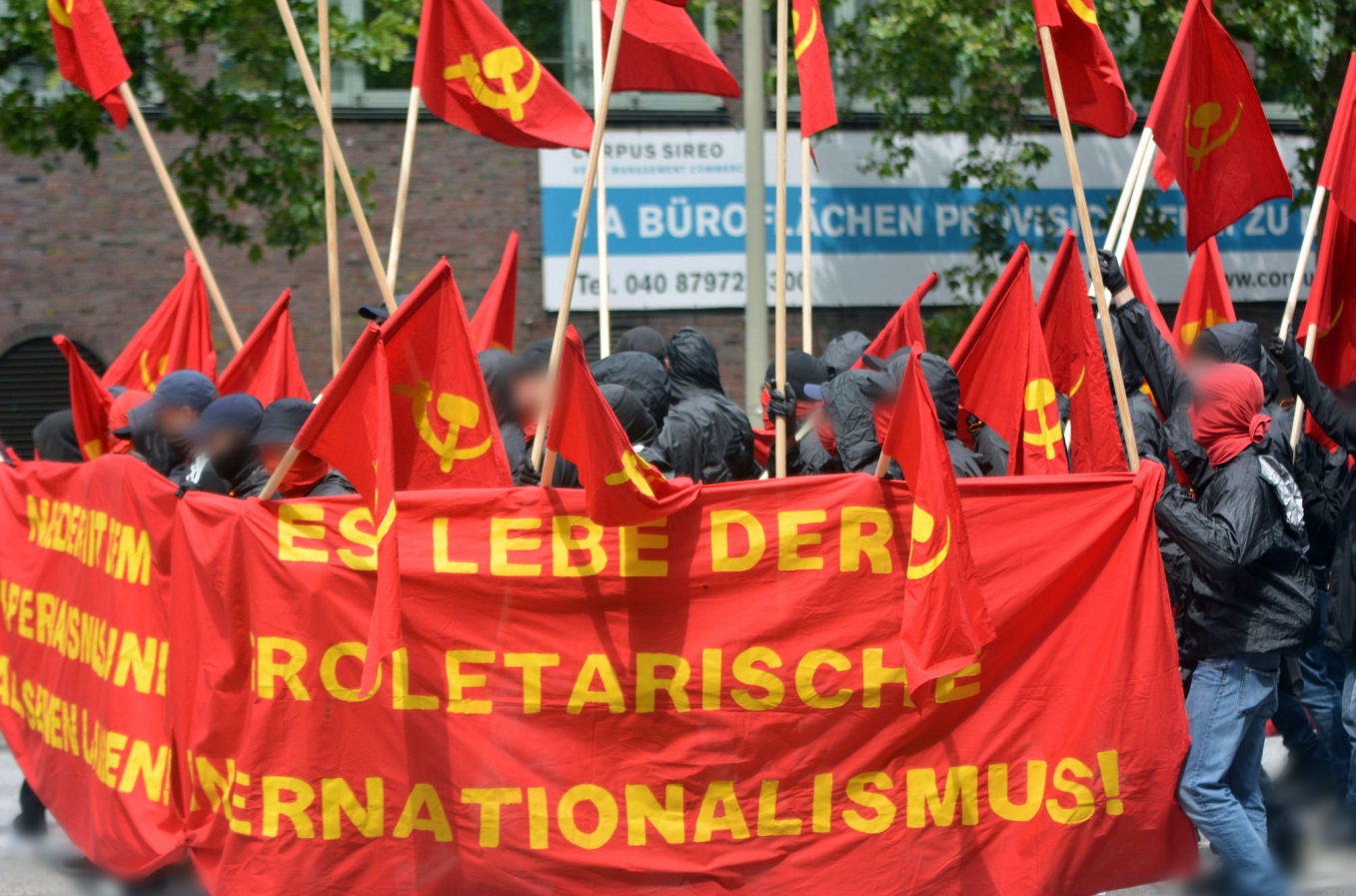 Por último, nos gustaría dejar claro ahora que todos los oportunistas y revisionistas en la tormenta de la indignación burguesa se arrodillan y se distancian: que un “izquierdista aleman” que condena, cuando compañeros de Grecia y España y otros países de la UE, que están bajo el pulgar del imperialismo aleman, descargan aquí en las calles su odio de clase legítimo, este “izquierdista” es y sigue siendo un social-patriota y en consecuencia es un enemigo mortal de la clase obrera. No en vano Lenin planteó en sus penetrantes advertencias contra tales tendencias y en su lucha contra el chovinismo, en general, el “chovinismo alemán”particularmente, como muestras desagradables de esta especie .