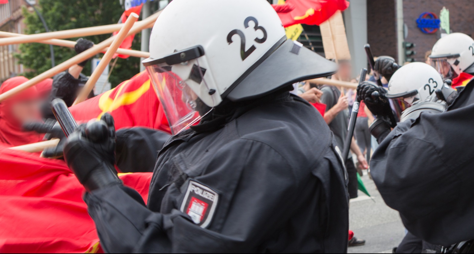 Después de la manifestación del sábado se hizo evidente que había una división en dos manifestaciones básicamente. Por lo tanto, debería ser con la manifestación “Welcome to Hell” una demostración de lucha a la que todos los que estaban dispuestos a luchar contra la policía vengan, pero esta lucha debería ser llevada a cabo aislada de las masas. La manifestación del sábado, sin embargo, debería ser el “contrapunto pacífico”. Esto deja claro que el control del revisionismo fue subestimado en la protesta con antelación, especialmente el control del llamado Partido de la Izquierda, que ha llamado incluso el ataque al Bloque Antiimperialista en la gran manifestación de masas, ya que ha frustrado el plan del revisionismo. Esto demuestra que los del Partido de la Izquierda no son ningunos “amigos en el camino equivocado”, sino que están estrecha y permanentemente fusionados con el aparato del Estado imperialista, incluso en relación con la represión en Alemania, no sólo en términos de las agendas de política exterior de la burguesía. Esto nos lleva a la importancia de la doctrina de Lenin de que los revolucionarios tienen que ser entrenados en la violencia revolucionaria y la lucha implacable contra el revisionismo. Para los compañeros cada golpe fue haber conseguido un recordatorio de lo que significa el revisionismo y cuál es su papel.