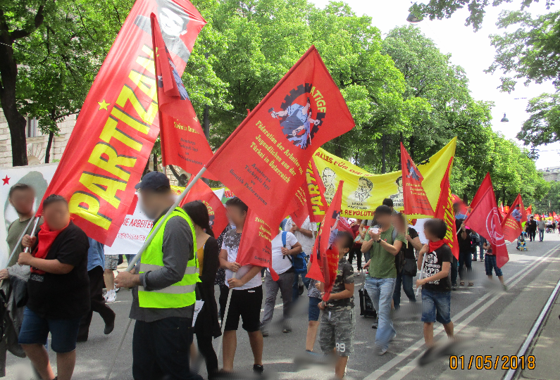 Der erste Mai 2018 wurde von den Revolutionären in Österreich kraftvoll und lebendig begangen. In allen Bundesländern waren die Demonstrationen größer als in den vergangenen Jahren und vor allem ist die gute Zusammenarbeit von den österreichischen Revolutionären mit den türkischen und kurdischen GenossInnen von Partizan Avusturia besonders hervorzuheben.