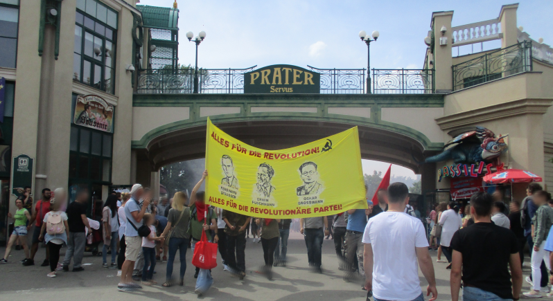 Nach der 1. Mai Demonstration gab es im Prater, der an diesem Tag von hunderttausenden Menschen besucht wurde, eine unangemeldete Demonstration. Unter der Parole „Alles für die Revolution! Alles für die Revolutionäre Partei!“, wurde die Demonstration durchgeführt. Auf dem Transparent waren drei der 12 Helden des Zentralkomitees, Erwin Puschmann, Ferdinand Strasser und Oskar Grossmann abgebildet. Viele Zurufe von Menschen rundherum, Klatschen und auch die Faust wurde von vielen zustimmend gehoben. Eine Aktivistin die bei der Demonstration dabei war meinte danach begeistert „Wir haben durch diese Aktion den roten 1. Mai wieder zu den ArbeiterInnen und den breiten Massen gebracht. Wir haben damit deutlich gezeigt, was es heißt auf die eigene Kraft zu vertrauen und den eigenen Weg des Kampfes zu gehen.“.