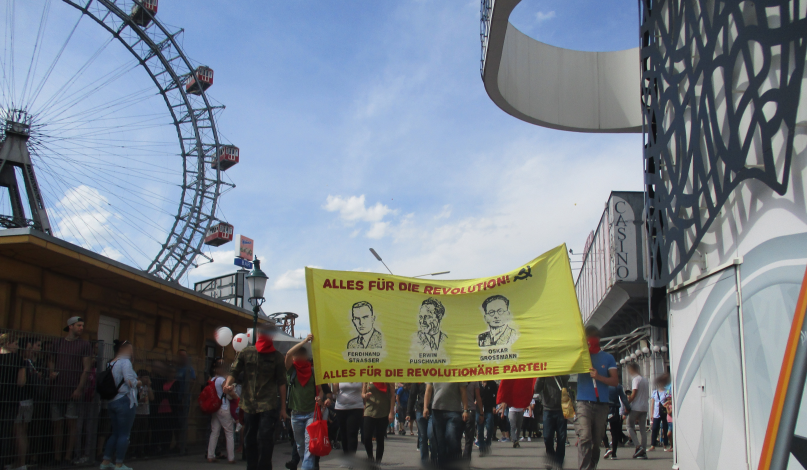 Der 1. Mai 2018 leitete eine große Kampagne zum 100 Jahrestag der Kommunistischen Partei Österreichs (KPÖ) ein, die in Transparten, Plakaten und Flyern einen kraftvollen Ausdruck fand. In vier Bundesländern wurden Transparente mit den 12 Helden des Zentralkomitees der Kommunistischen Partei Österreich, die allesamt von den Nazi-Faschisten ermordet wurden, hochgehalten. Die Losung „Alles für die Revolution! Alles für die Revolutionäre Partei“ gab die weitere Orientierung für die revolutionären Kräfte über ihre Aufgaben im kommenden Kampfjahr: Die Rekonstitution der Kommunistischen Partei mit aller Kraft voranzutreiben!