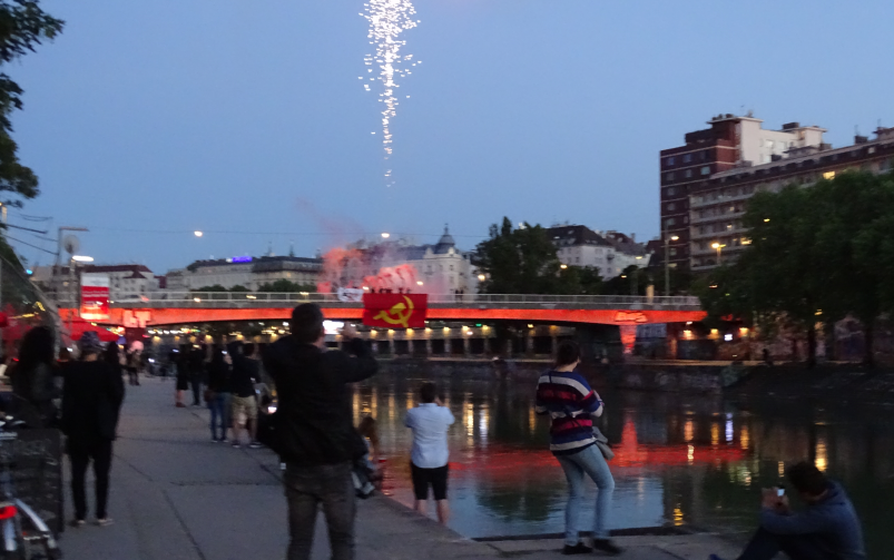 Die Kampagne wurde vom durchführenden „Komitee Karl Marx“ und GenossInnen von Partizan Avusturia mit ganzer Kraft angepackt, geplant und ausgeführt. Am Karl-Marx-Hof in Wien, mit mehreren Kilometern Länge der größte zusammenhängende Wohnabau der Welt, wurden rote Fahnen angebracht und Reden gehalten. Auf den Brückenkopfgebäuden über der Donau in Linz, die ursprünglich von den deutschen Faschisten errichtet wurden, wehte nun siegessicher und kraftvoll die rote Fahne mit Hamer und Sichel. Als die Aktionen durchgeführt wurden, gab es tatsächlich nicht nur Begeisterung, sondern Jubel unter Massen, die die Aktion beobachteten, teilweise applaudierten sie lange. Bei einer größeren Aktion wurde darüber hinaus noch ein großes Feuerwerk abgeschossen. Manche der Fahnen hingen auch an zentralen Plätzen das ganze Wochenende lang, denn niemand nahm sie ab oder informierte zuständige Behörden.