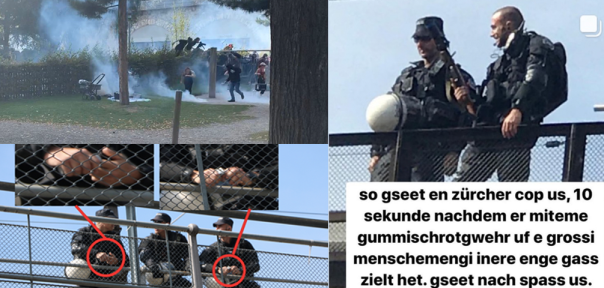 Die Zürcher Polizei hat auch ihren wahren Charakter gezeigt, als sie Kinderecke des Josefsparks von einer Eisenbahnbrücke aus mit Tränengas beschossen hatte.