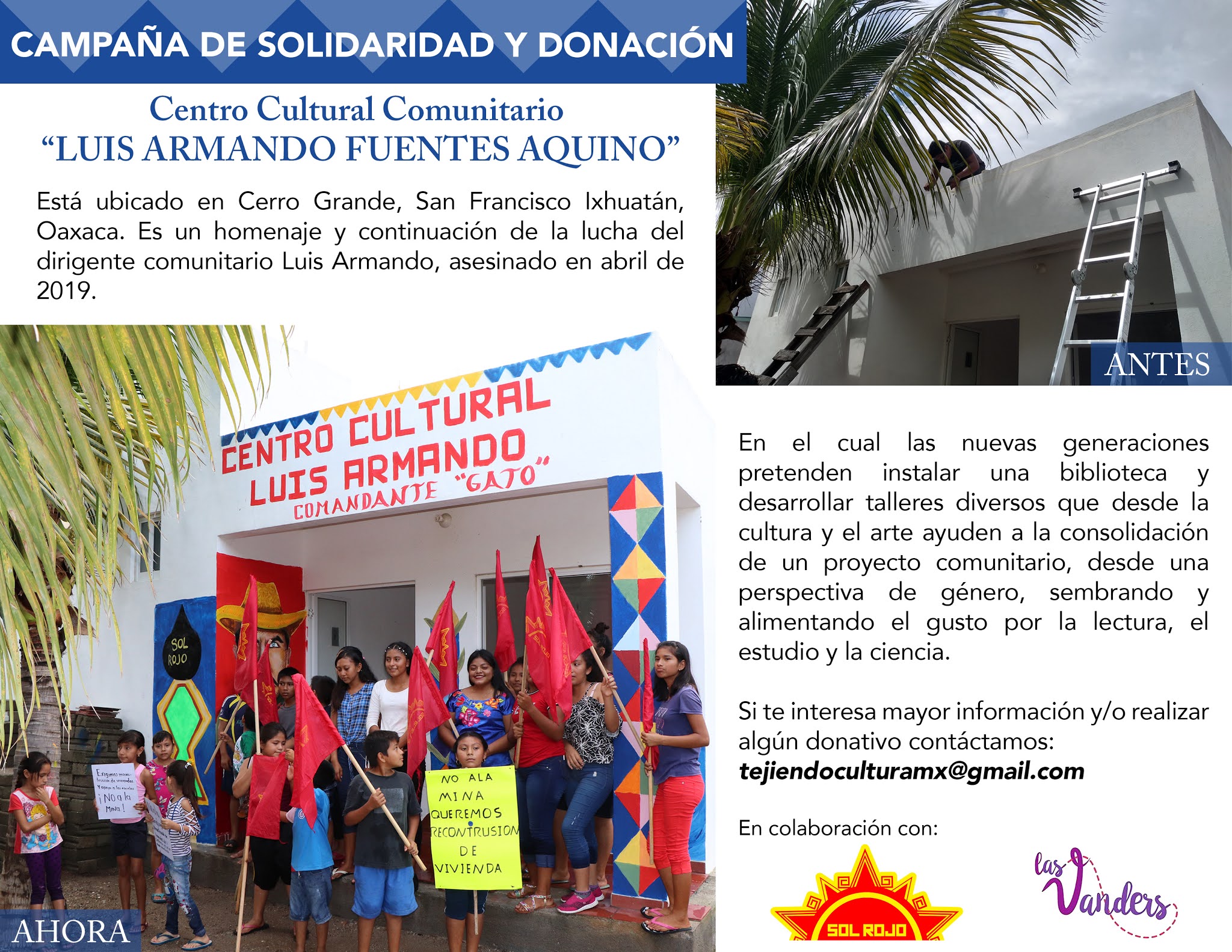 In Erinnerung an Luis Armando, besser bekannt als „Comandante Gato“, wurde vor kurzem in seiner Heimatstadt Cerro Grande, welche im Osten von Oaxaca, Mexiko, gelegen ist, ein neues Kommunales Kulturzentrum eröffnet. In Cerro Grande beteiligte sich „Comandante Gato“ in vielen Kämpfen der indigenen Bevölkerung in der Region Istmo de Tehuantepec, war Teil der Organisierung der Selbstverteidigungskräfte des Volkes und führte Kämpfe, wie beispielsweise die der Fischer. Am 11 April 2019 wurde er auf dem Rückweg in seine Heimatstadt in einemHinterhalt von Paramilitärs ermordet.
