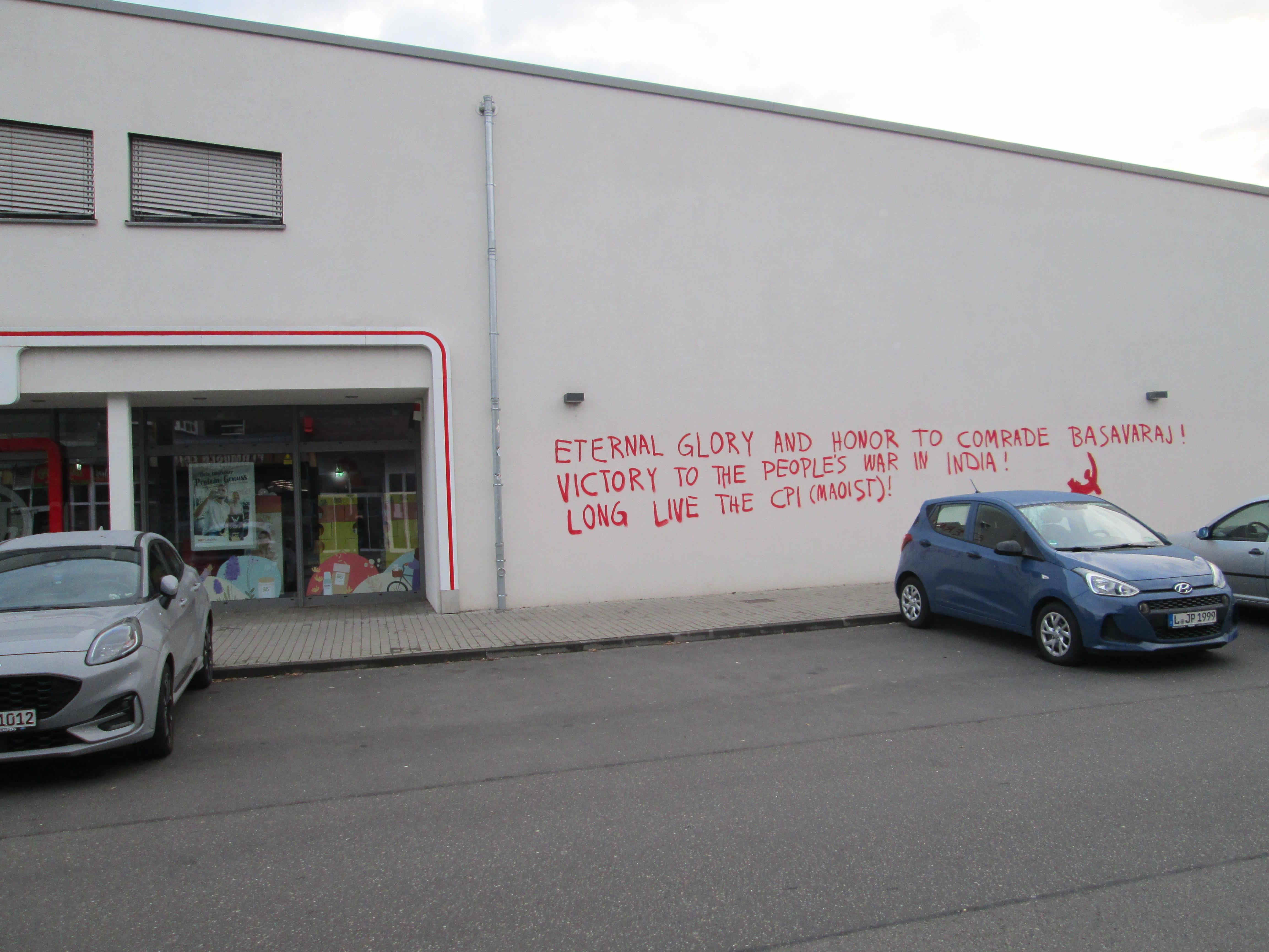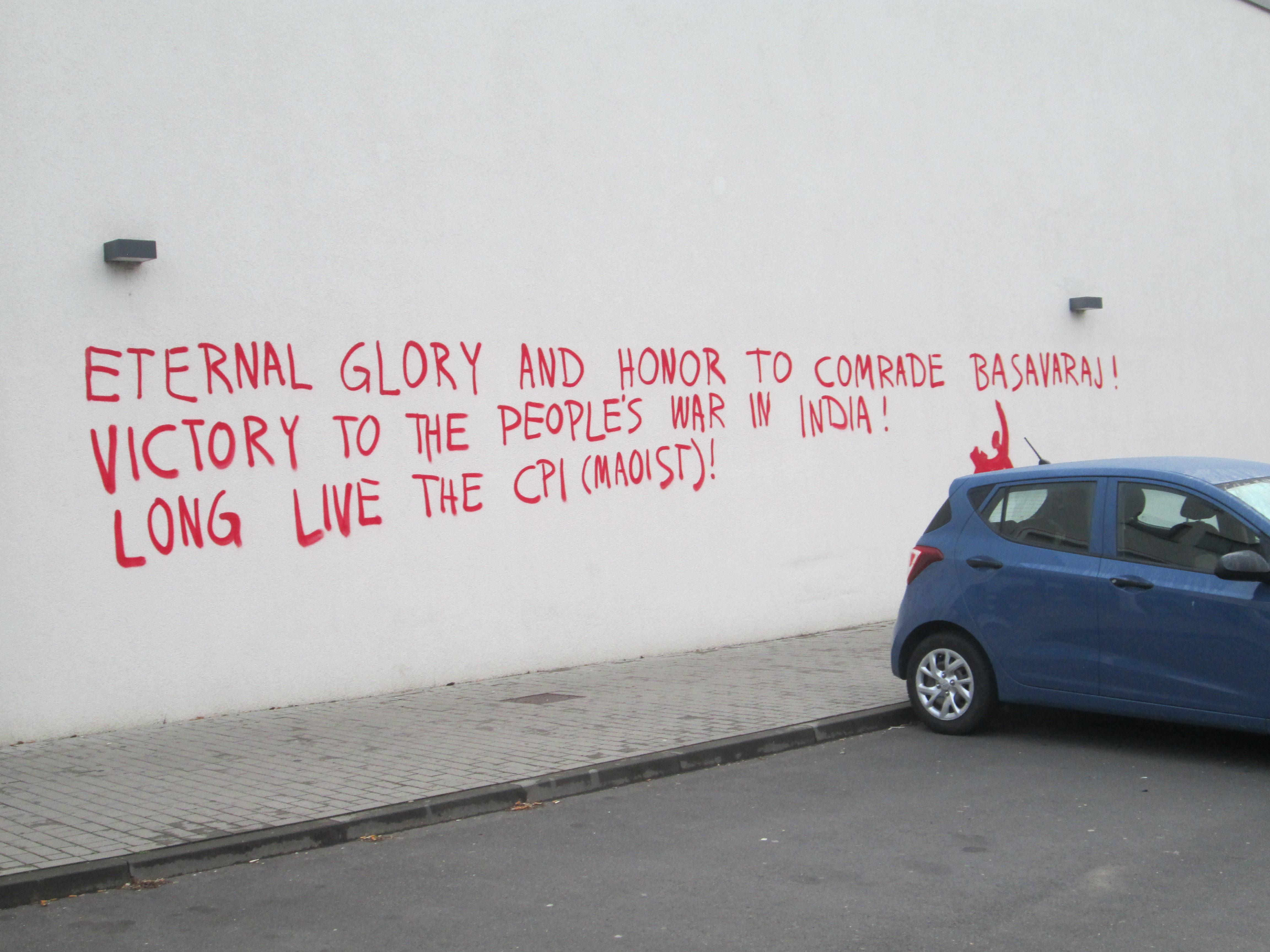 Wir haben Bilder aus Leipzig erhalten von einer Malung zu Ehren des Genossen Basavaraj, Generalsekretär der Kommunistischen Partei Indiens (maoistisch), der im Kampf gegen die blutige Einkreisung durch die Kräfte des alten indischen Staates sein Leben für Partei und Revolution gegeben hat.