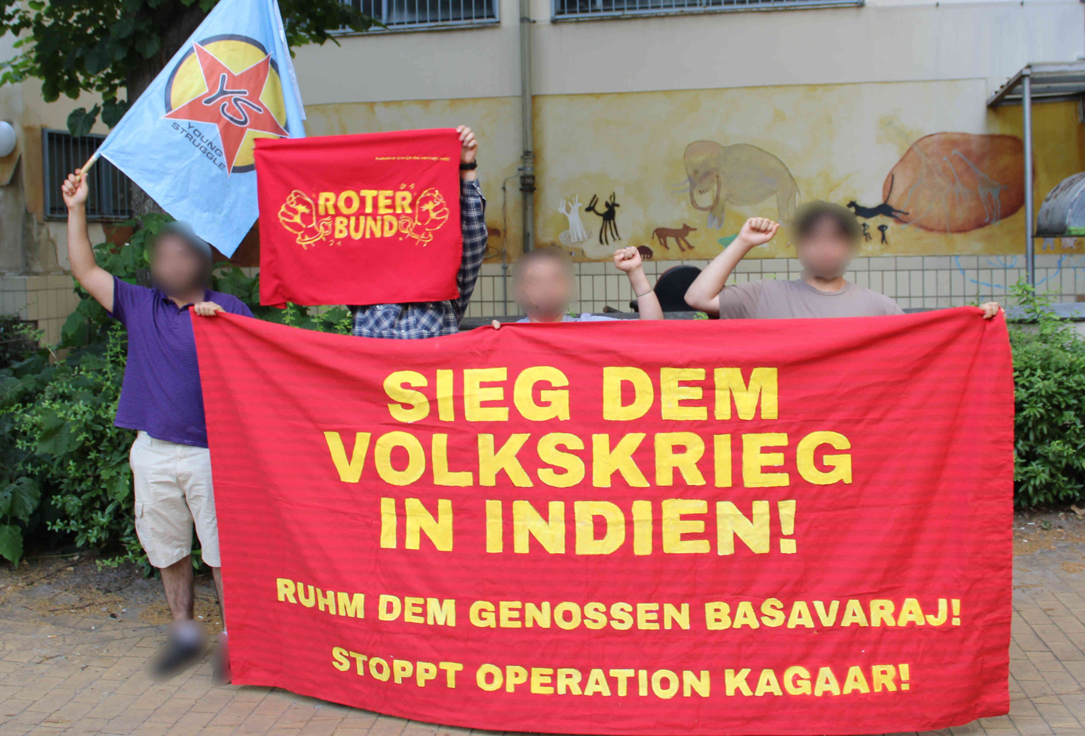 Aktion zu Ehren und Gedenken des Generalsekretärs der Kommunistischen Partei Indiens (Maoistisch), Genosse Basavaraj und der 27 maoistischen Kämpfer in Frankfurt