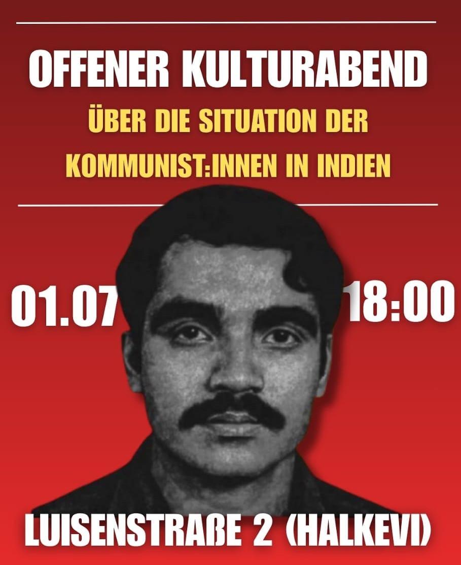 Zu Ehren des gefallenen Generalsekretärs der Kommunistischen Partei Iniens (Maoistisch) und in Gedenken an alle in Indien gefallenen Revolutionäre riefen die Organisationen Partizan, Young Struggle und der Rote Bund zu Aktionen in Solidarität mit den Genossen in Indien auf.
