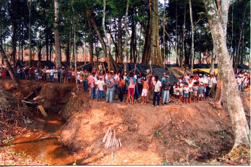 600 Bauernfamilien nahmen den Großgrundbesitz Santa Elina in Corumbiara im Juli 1995 in Besitz um ihr heiliges Recht auf Land zu erfüllen.