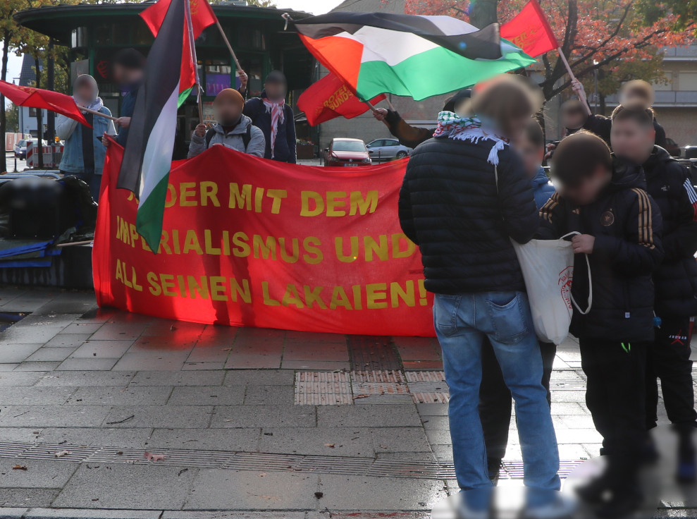 In der Agitation von Aktivisten des Roten Bundes wurde vornehmlich die aktuelle Situation beleuchtet und neben einer Aufzählung der israelischen Kriegsverbrechen die aktuelle Position des Widerstands verdeutlicht – dass ein politisches und sicherheitspolitisches Versagen der Besatzungspläne []erreicht wurde und dass man in keinem Fall sein Kampfgut abgeben werde, sondern weiter an seinen Zielen festhalte. Es wurde auch auf die aktuellen Explosionen der Massenkämpfe, besonders in Lateinamerika eingegangen, und in diesem Zusammenhang die Aggression der USA gegen Venezuela denunziert. So wurde übergeleitet zu der Vereinheitlichung der Führung der Kämpfe der Völker der Welt und zur Rolle der Führung durch eine Ideologie, die aus all diesen Kämpfen erwachsen ist – dem Maoismus. Die Kundgebung wurde abgeschlossen mit der Parole »Nieder mit jedem Imperialistenhund, reiht euch ein beim Roten Bund!«