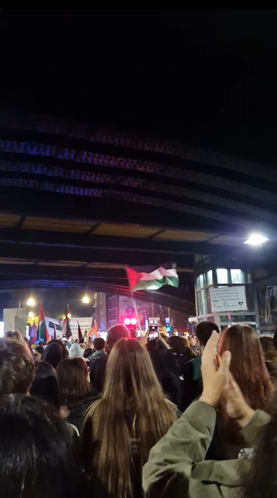 Besonders die unorganisierten Demonstrationsteilnehmer kümmerten die restriktiven Auflagen der Kölner Polizei zur Beschneidung der Meinungsfreiheit wenig und so ertönten aus dem hinteren Teil der Demonstration die Rufe „From the River to See, Palestine will be Free“, „There is only one Solution, Intifada! Revolution!“. Als im belgischen Viertel die Demonstration an einem israelischen Restaurant vorbeilief, welche zionistische Propaganda in ihren Schaufenstern aushängen hatten, kommentierten das die Teilnehmer mit Rufen welche verschiedene palästinensische Widerstandsorganisationen hochleben ließen.