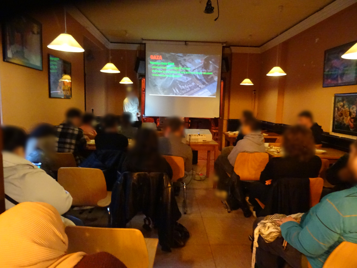 Am 8. Oktober fand in Dortmund das monatliche Palästina-Café statt, welches vom Roten Bund mitorganisiert wird. In dem kurzen Input wurde auf die aktuelle Situation in Palästina und den umliegenden Ländern eingegangen und in der Diskussion von den Teilnehmern der „20-Punkte-Plan“ ausgiebig diskutiert.