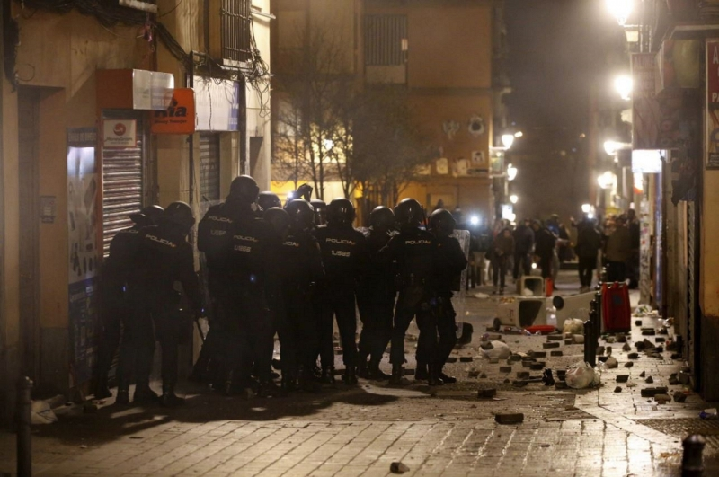 Hundreds of immigrants and Spanish youths protested violently on the streets of central Madrid, capital of Spain, in repudiation of the death of a 35-year-old Senegalese immigrant, which happened on 15 March. Mmame Mbage, who had been in Spain for 14 years, apparently had a heart attack due to a police chase. Demonstrators held more than four hours of protests that went throught the night of March 16, after which three bank agencies and also police vehicles were destroyed. There were burning barricades of the demonstrators through the streets. Facing the police with sticks and stones, the protest left at least 10 repression agents injured. Even by using rubber bullets the repression was not able to hold the protest and six young Spanish youth were detained.