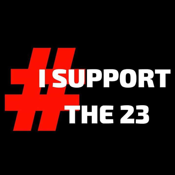 – Displaying of banners supporting the 23 at working, studying or housing places.